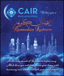 On the occasion of the Holy Month of Ramadan, the CAIR-Philadelphia Staff, Executive Committee and Advisory Board wish you and your families Ramadan Mubarak, Ramadan Kareem, a Happy and Blessed Ramadan. During this sacred month, please consider making a donation to CAIR-Philadelphia. We are a nonprofit organization and all contributions to CAIR are tax-deductible and zakat-eligible.
