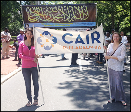 Intern Nariman Amin is pictured below, holding CAIR-Philadelphia’s banner at the parade.